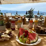 This accommodation has private access to an own beach with beach umbrellas.